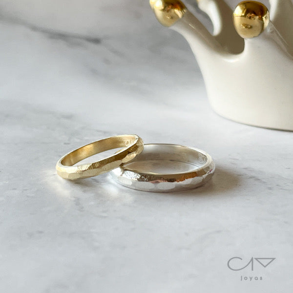 • Cargar imagen en el visor de la galería, Argollas de matrimonio con textura facetada
