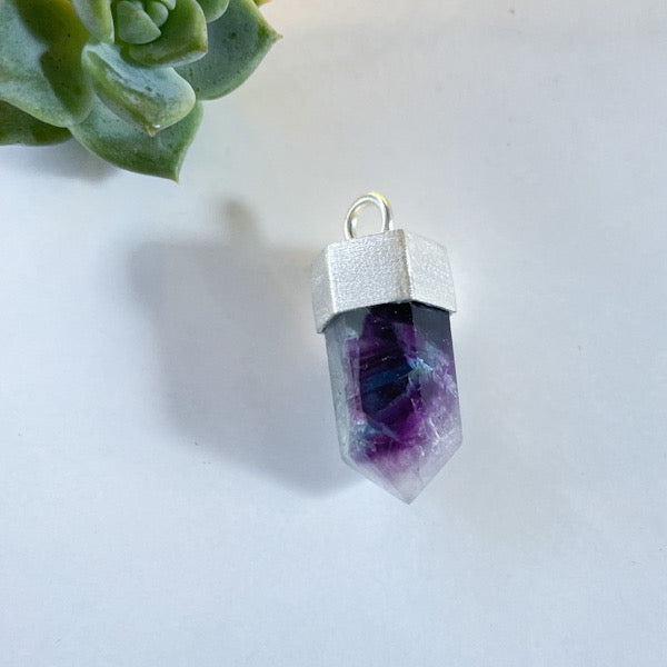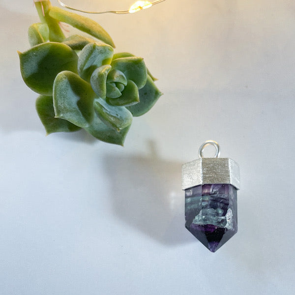 Colgante de plata 950 diamantada con punta de Fluorita.